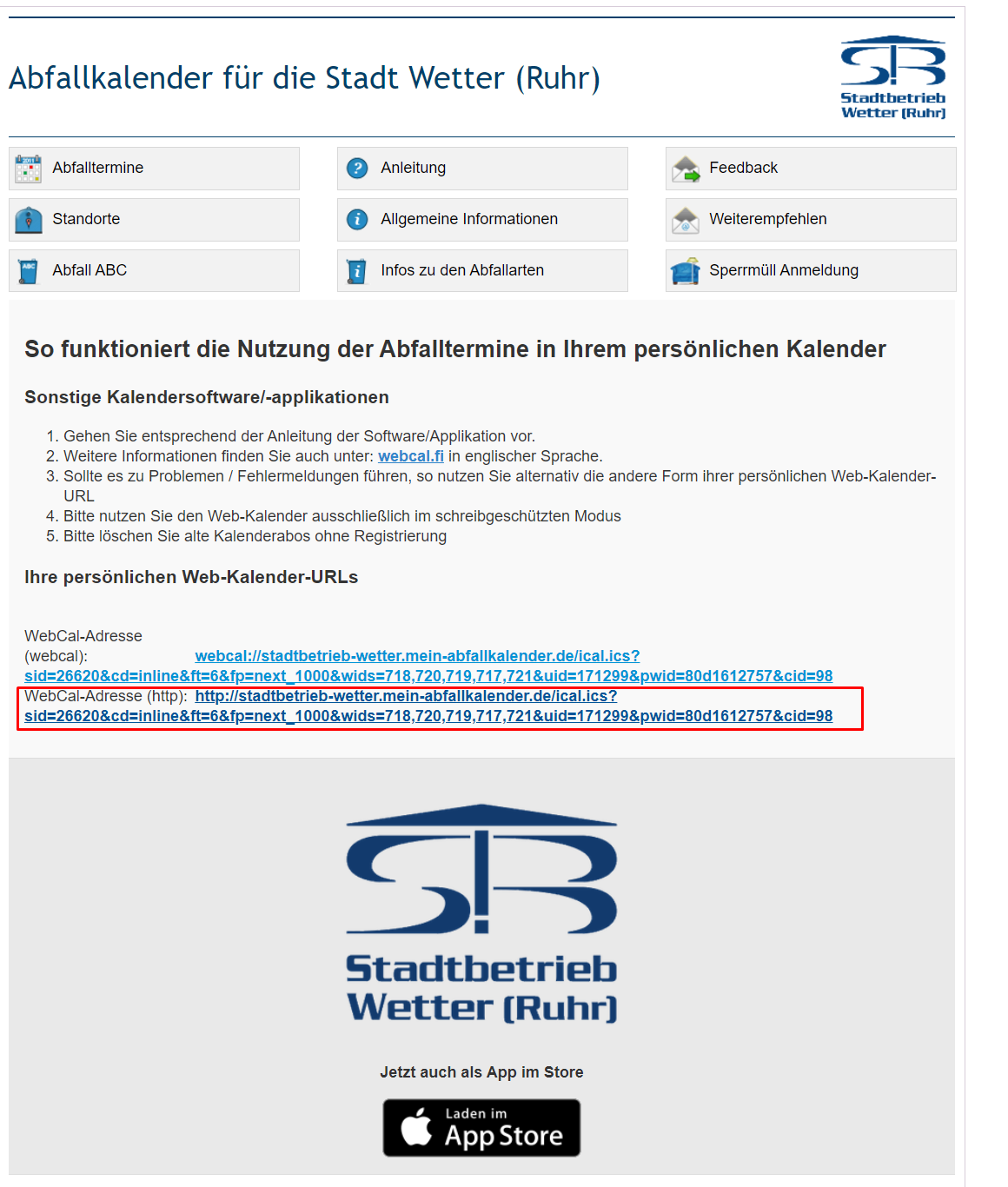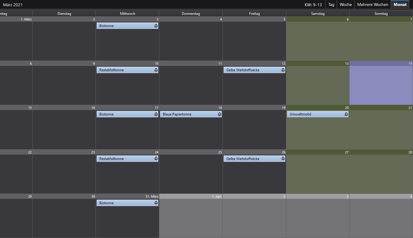 9. Sie haben es geschafft und sehen Ihre persönlichen Abfalltermine nun in Ihrem Kalender
