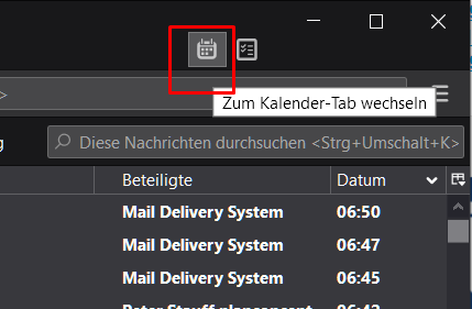 5.) Klicken Sie auf das markierte Symbol um zum Kalender zu wechseln