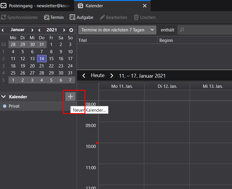 6.) Fügen Sie hier ein neuen Kalender hinzu