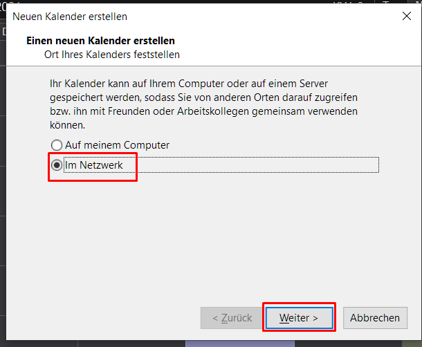 7.) Wählen Sie "Im Netzwerk" und klicken Sie auf "Weiter".
