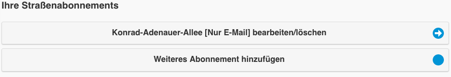 3.) Wählen sie eine Strasse, die Benachrichtigungsart und die Abfallarten aus. Klicken sie auf "Denk-dran Abonnement speichern".