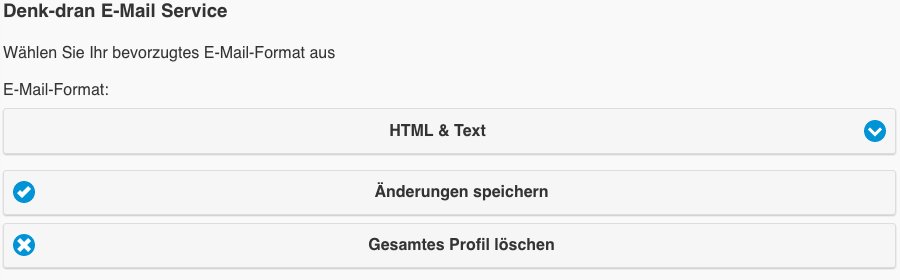 1.) Öffnen sie ihre Profilverwaltung über den Link "Einstellungen ändern" in der zuletzt gesendeten Denk-dran-Erinnerung.